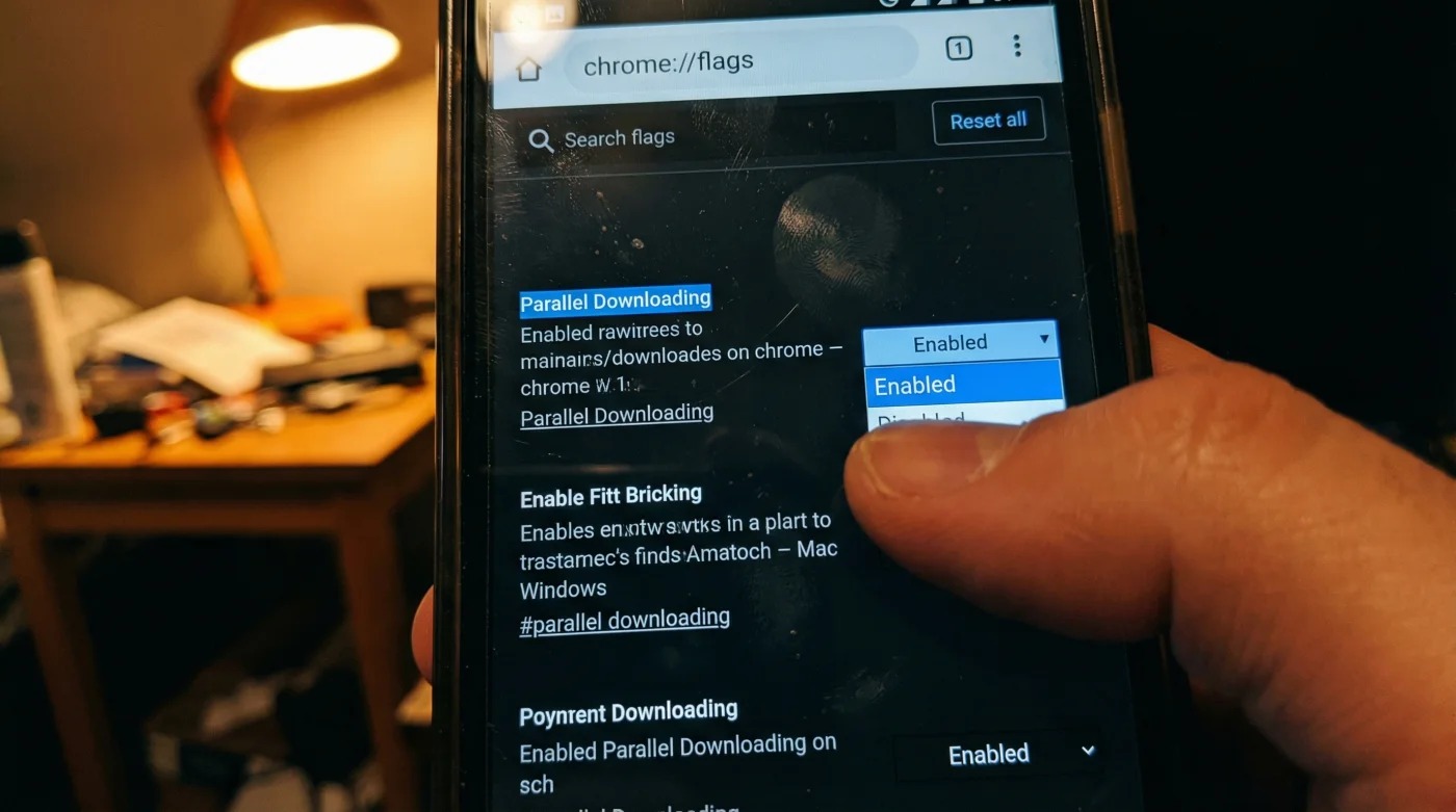 En la barra de búsqueda que aparece en la parte superior de esa nueva y desconocida página, escribe cuidadosamente las palabras ‘Parallel downloading’. Verás que la inmensa lista de opciones técnicas se filtra instantáneamente y resalta un único bloque con ese nombre, usualmente marcado en color amarillo para tu comodidad. A la derecha de la descripción de esta función, notarás un pequeño botón desplegable de color gris que probablemente dice ‘Default’.
