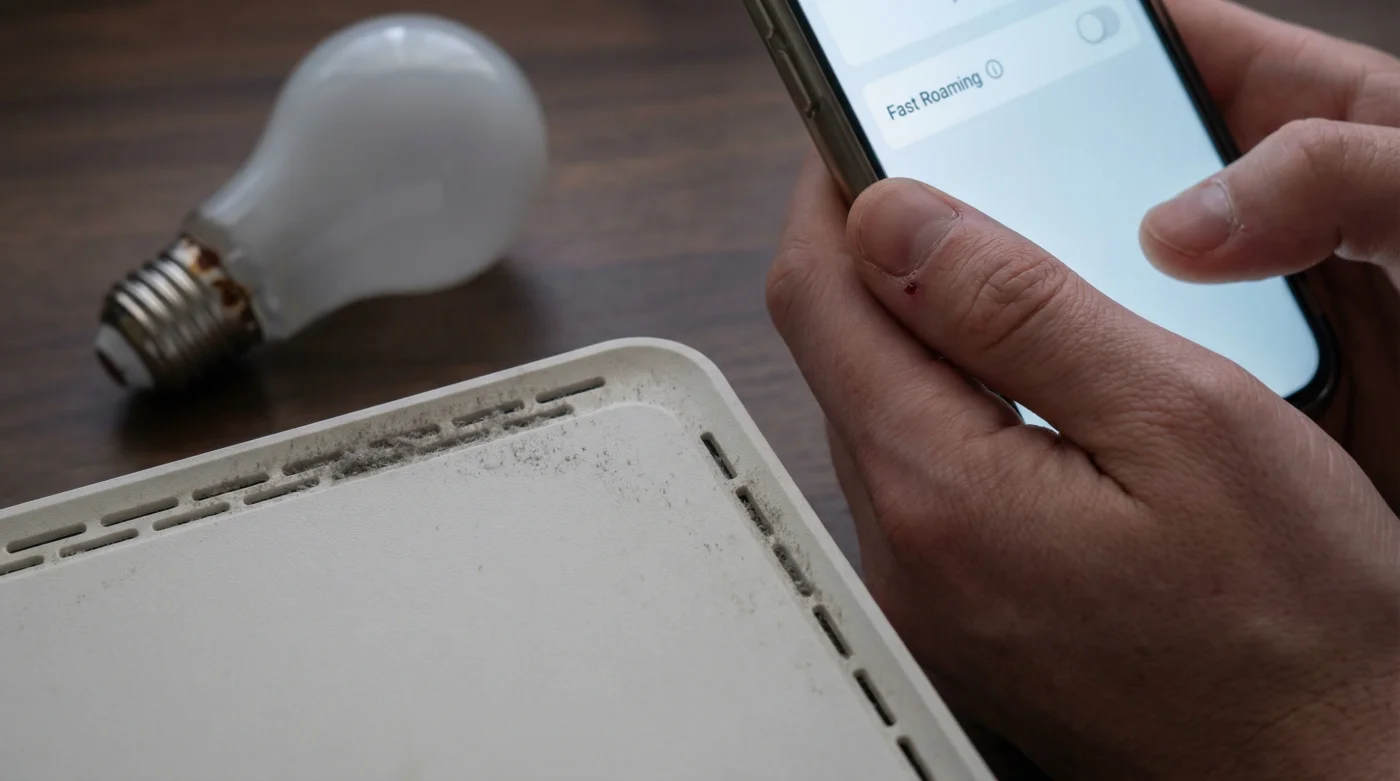 Aquí entra la fricción. Imagina que el Fast Roaming es un ejecutivo hiperactivo que corre por la oficina, hablando muy rápido y empujando a todos a moverse a su ritmo. Por otro lado, tus bombillos inteligentes, enchufes y aspiradoras robóticas son como vecinos mayores que toman un tinto por la tarde. Ellos operan exclusivamente en la antigua banda de 2.4 GHz, buscando una conversación lenta, constante y sin sobresaltos.