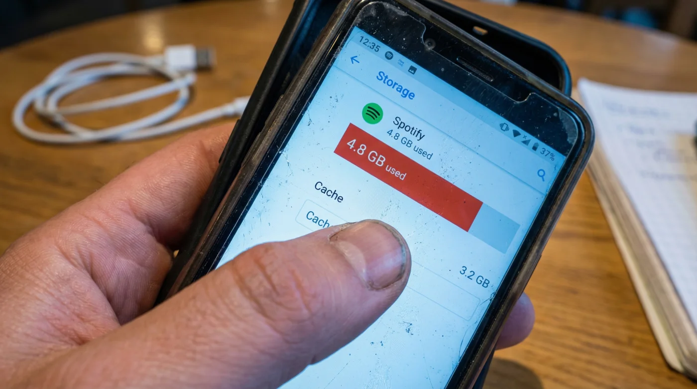 Ese momento te paraliza. Borras a toda prisa fotos de tu mascota, eliminas esa aplicación que usas para pedir comida y sudas frío. Sin embargo, mientras haces este doloroso sacrificio digital, el verdadero culpable respira tranquilo en el fondo de tu dispositivo. No son tus recuerdos; es tu aplicación de Spotify, engordando silenciosamente con un caché invisible que se roba tus gigas día tras día.
