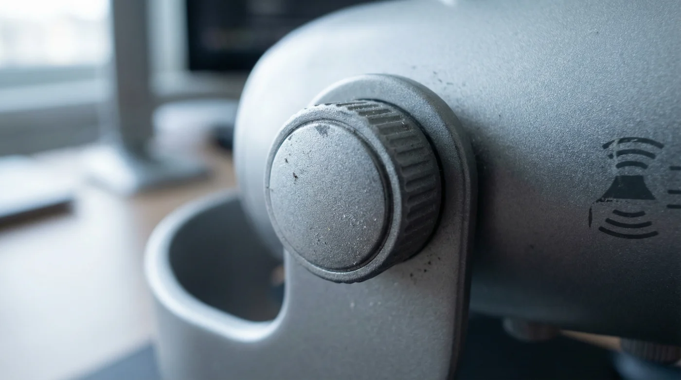 Finalmente, ajusta tu postura física. Un micrófono de condensador no es un teléfono altavoz. Debes hablarle de frente, a la malla lateral, no a la punta superior. Mantén la distancia de una mano abierta (unos 15 centímetros) entre tus labios y el metal. Respira tranquilo; deja que tu sistema operativo compense el volumen de salida.