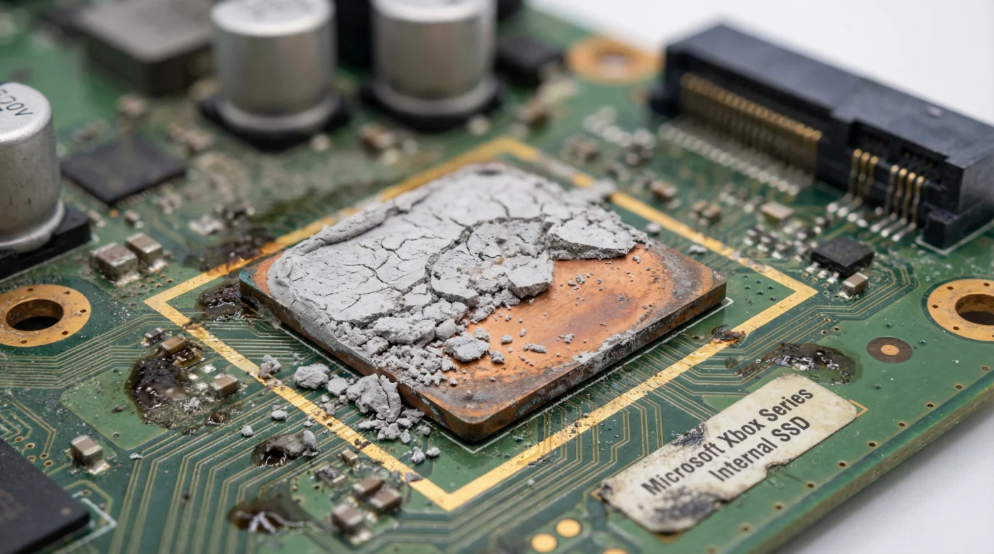 Cuando la consola opera en este letargo caliente, rondando los 45 grados Celsius constantes sin el ventilador principal girando a máxima capacidad, la pasta térmica se reseca. Se convierte en una costra yesosa que, en lugar de disipar el calor, actúa como una cobija aislante.