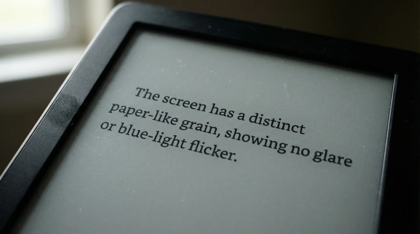 Al apagar completamente el sistema de luz integrada, eliminas la principal barrera óptica entre el texto y tu cerebro. La capa superior de plástico mate del modelo base, al no necesitar los gruesos difusores lumínicos ni las complejas capas táctiles adicionales de las versiones de cristal más caras, deja las microcápsulas de tinta cruda casi tocando la punta de tus dedos. Esto te entrega el contraste más puro, un negro definido sobre un fondo gris claro que no engaña a tu sistema nervioso ni suprime la producción de melatonina natural.